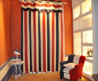 一、通過選擇豎條圖案的窗飾使房間“增高”